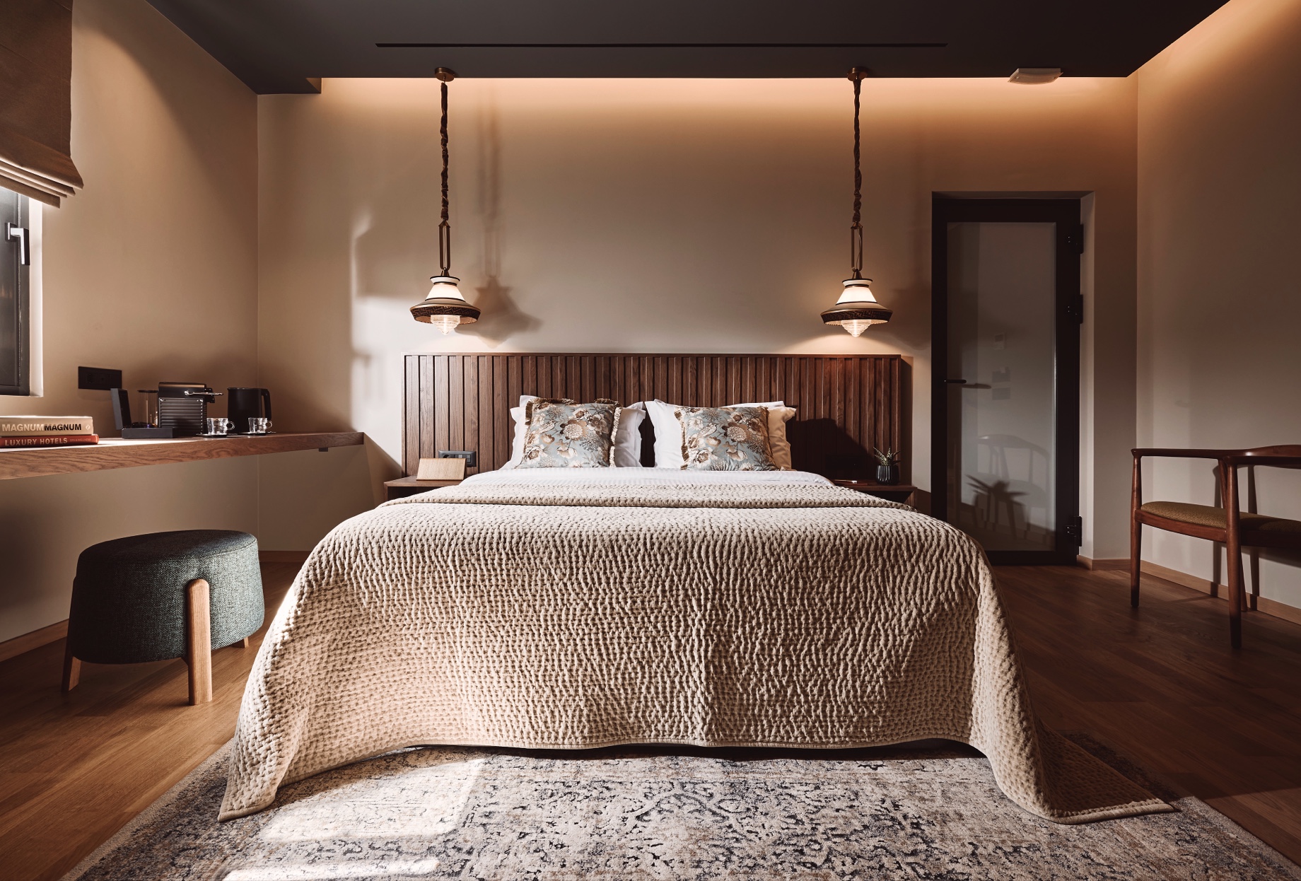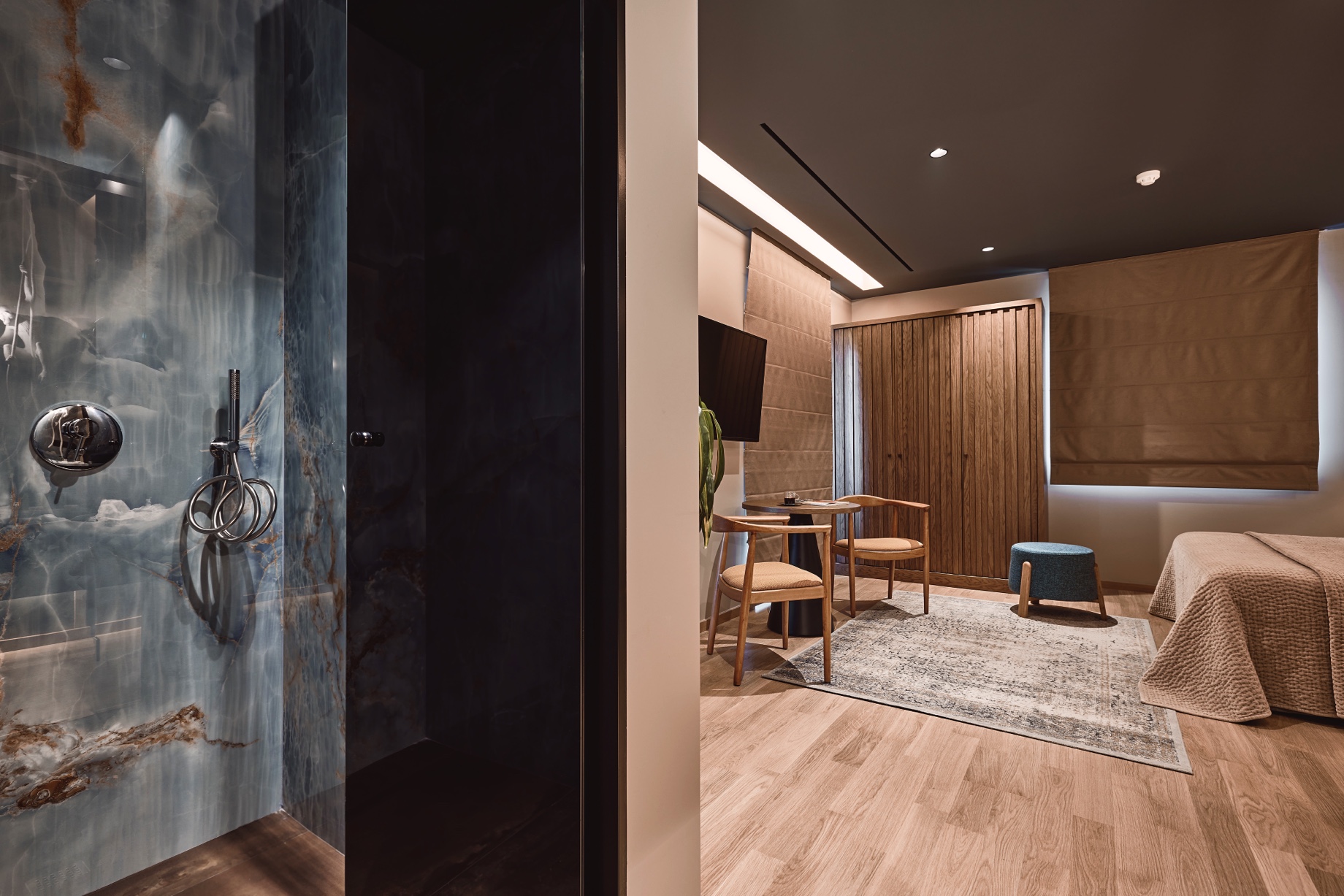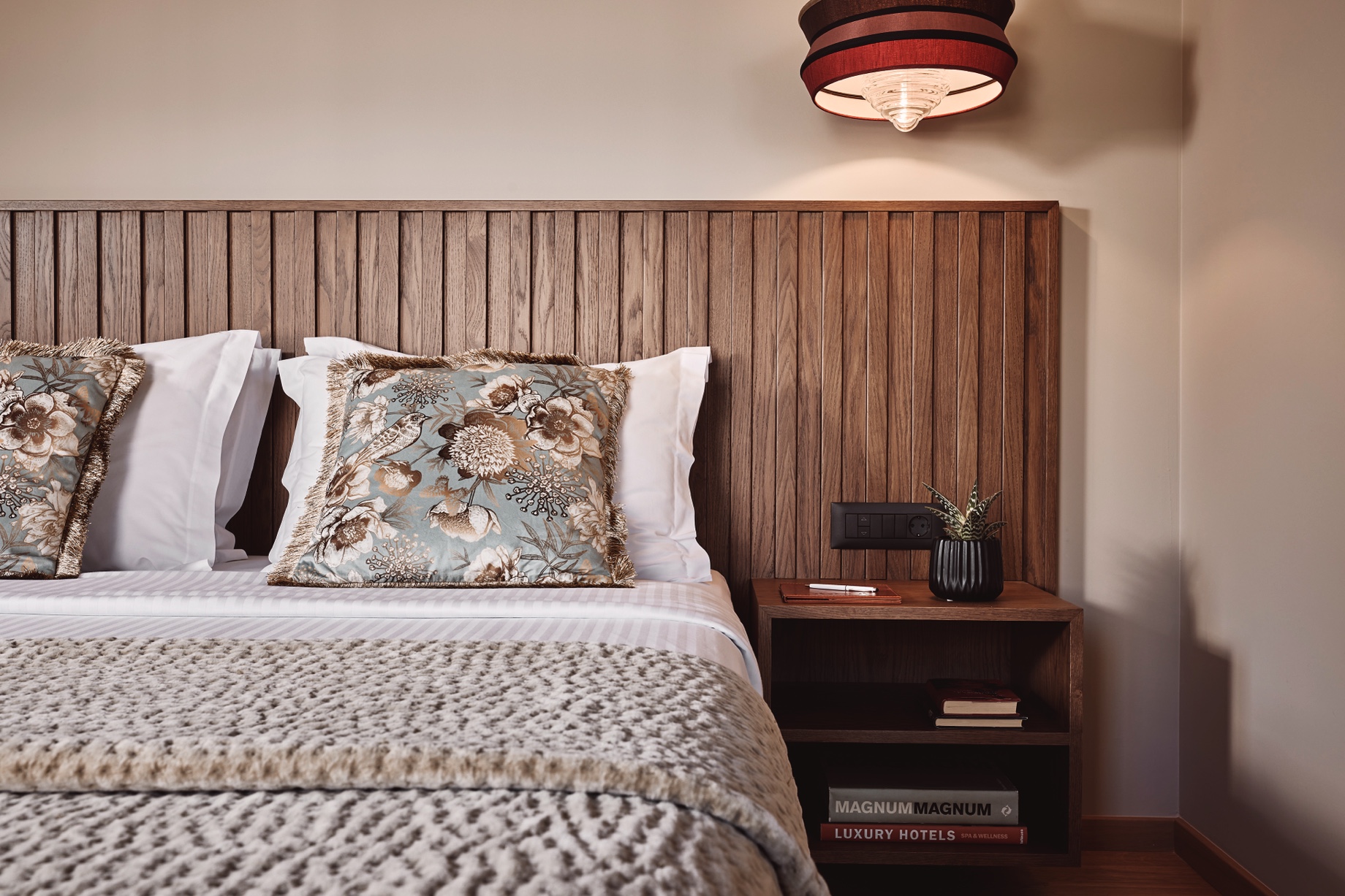 The Deluxe Double Room with Side Sea View can accommodate up to 2 guests. It offers a king-size bed, monitor lifted TV, a specially decorated bathroom with two handmade stone washbasins and Salvatore Ferragamo toiletries. The suite has a comfortable living room, office desk, hidden lighting and details carefully selected with passion for the care of our guests.