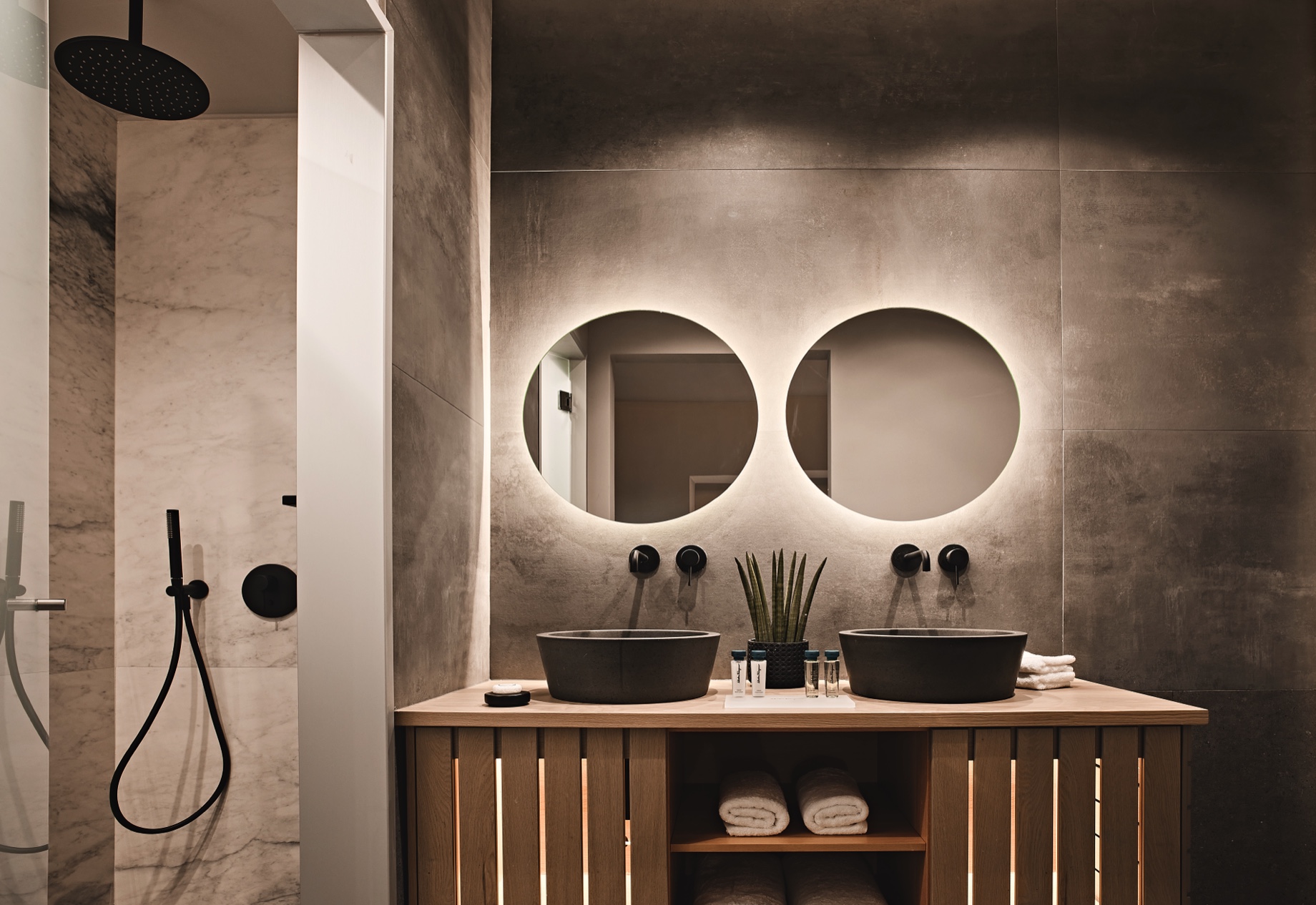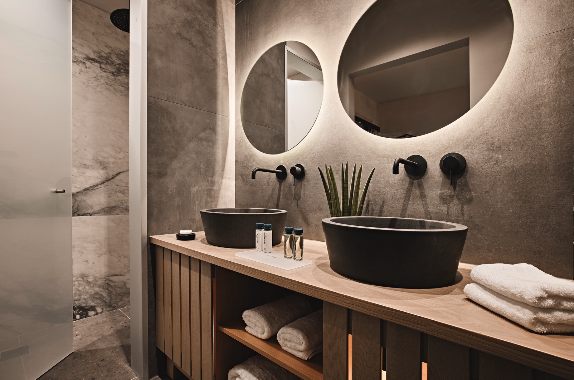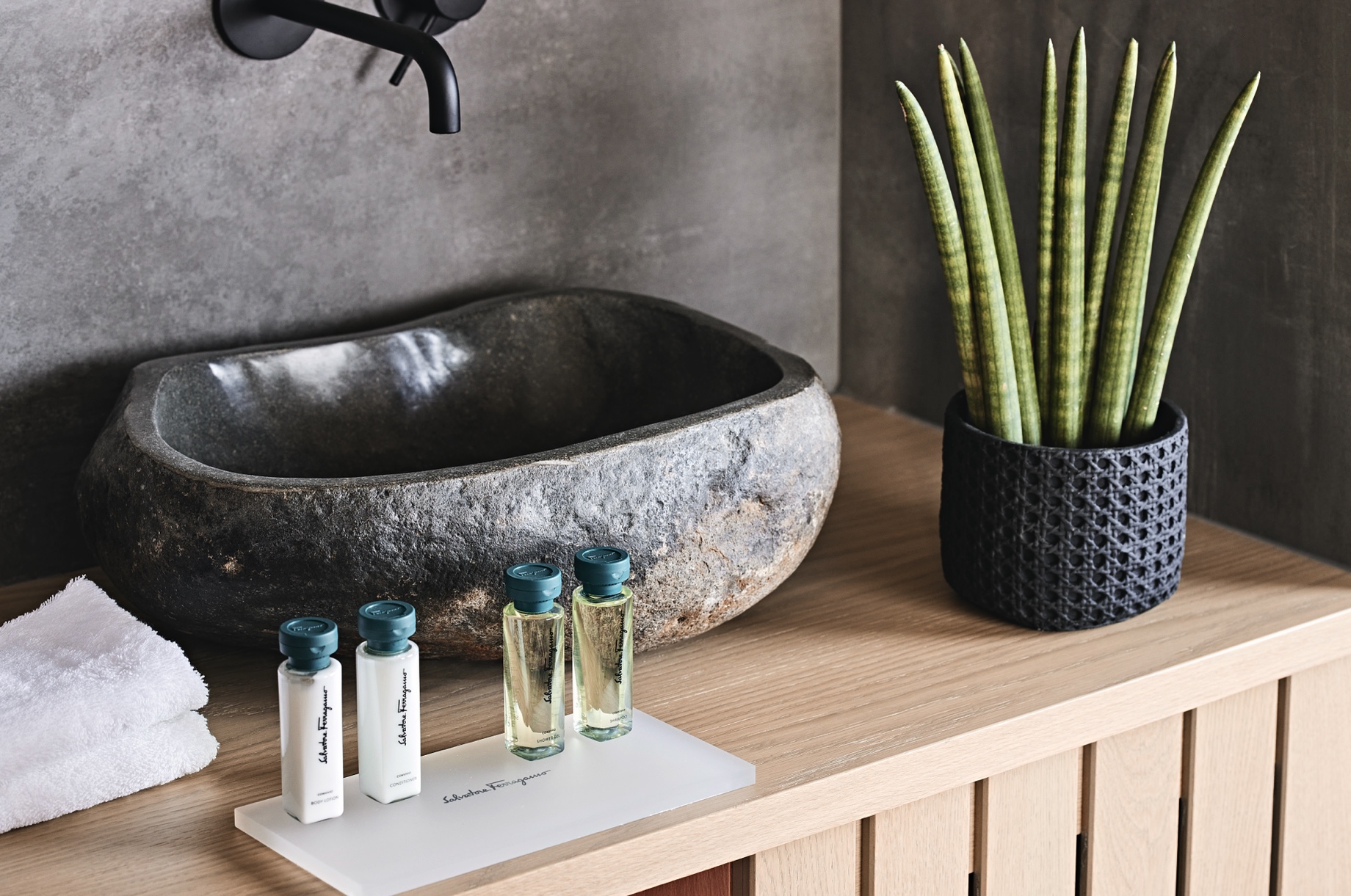 The Deluxe Double Room can accommodate up to 2 guests. It offers a king-size bed, monitor lifted TV, a specially decorated bathroom with two handmade stone washbasins and Salvatore Ferragamo toiletries. The suite has a comfortable living room, office desk, hidden lighting and details carefully selected with passion for the care of our guests.