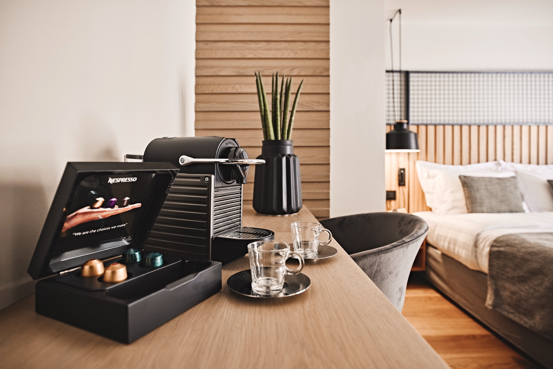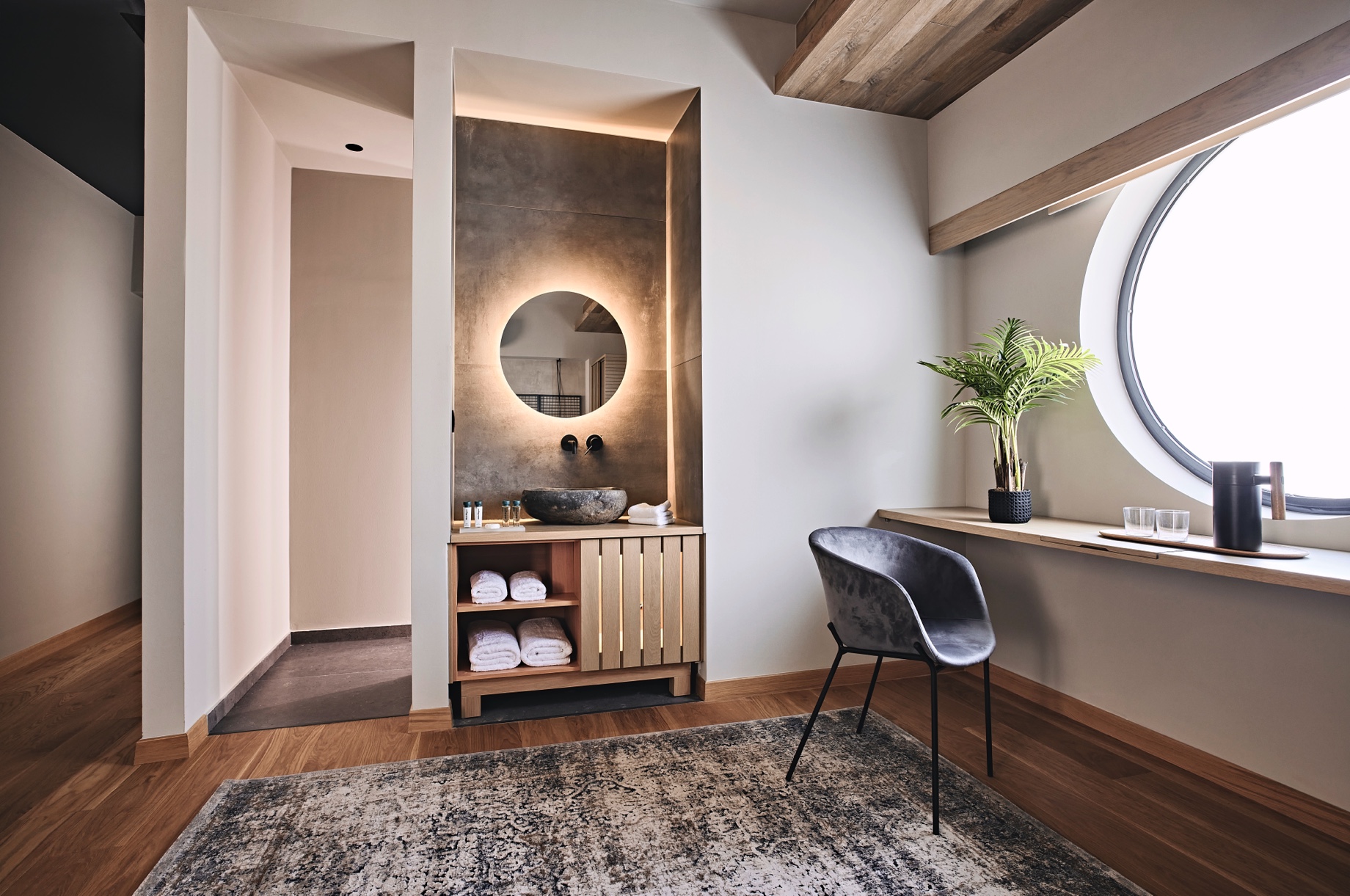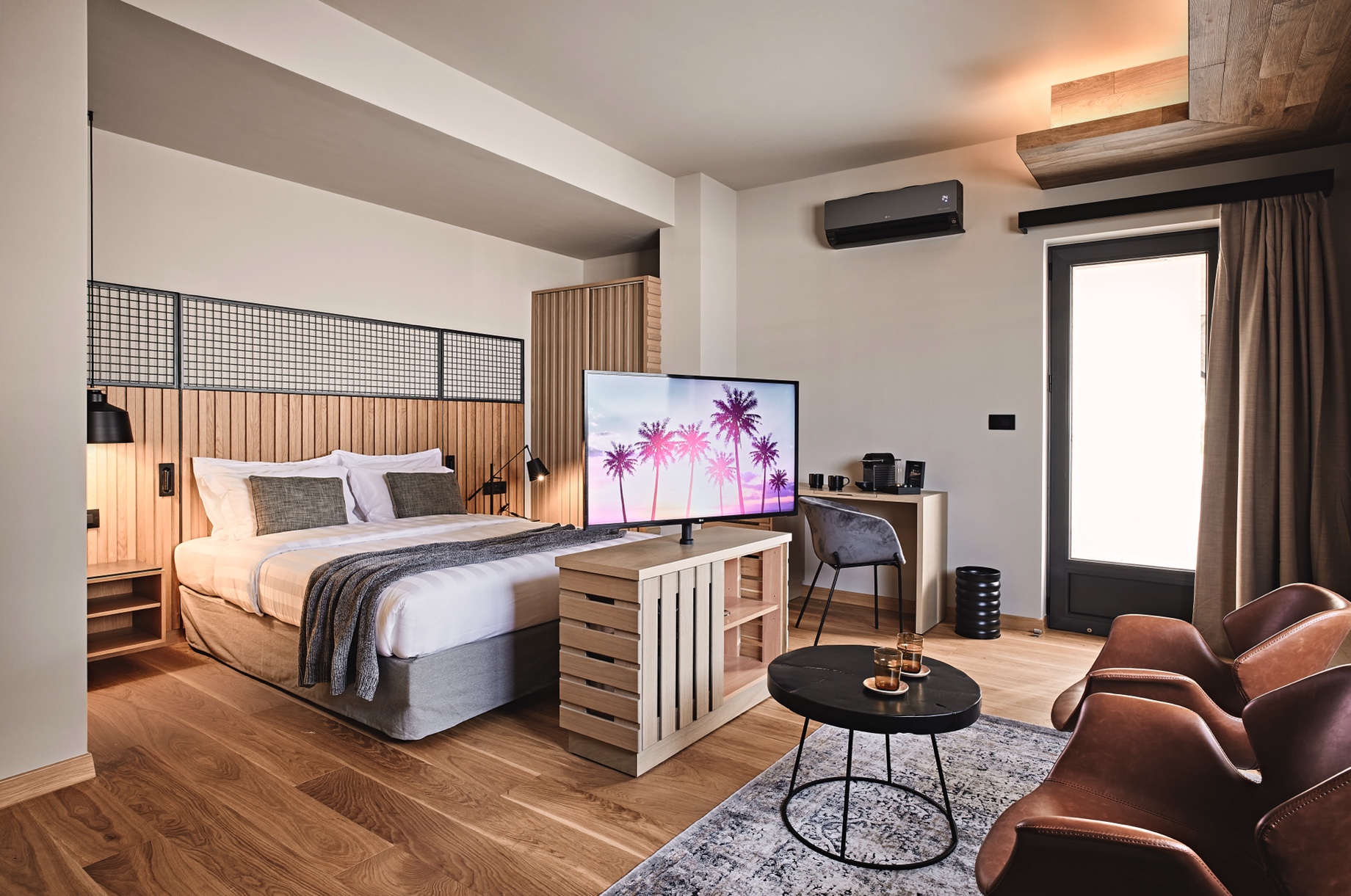 The Deluxe Double Room can accommodate up to 2 guests. It offers a king-size bed, monitor lifted TV, a specially decorated bathroom with two handmade stone washbasins and Salvatore Ferragamo toiletries. The suite has a comfortable living room, office desk, hidden lighting and details carefully selected with passion for the care of our guests.